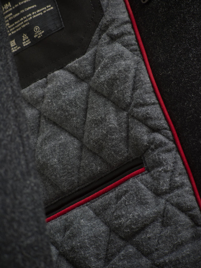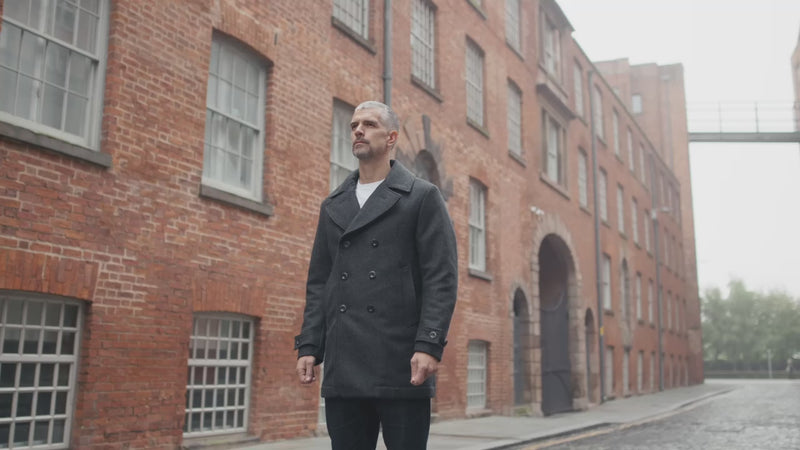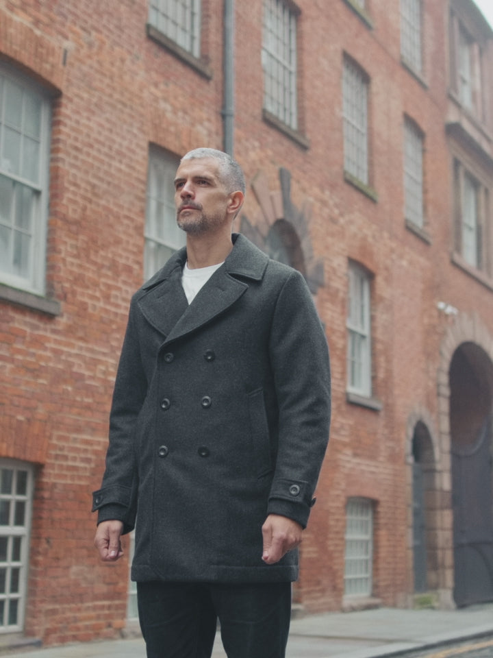 Pure Wool Quilted Peacoat 2025 Charcoal Grey