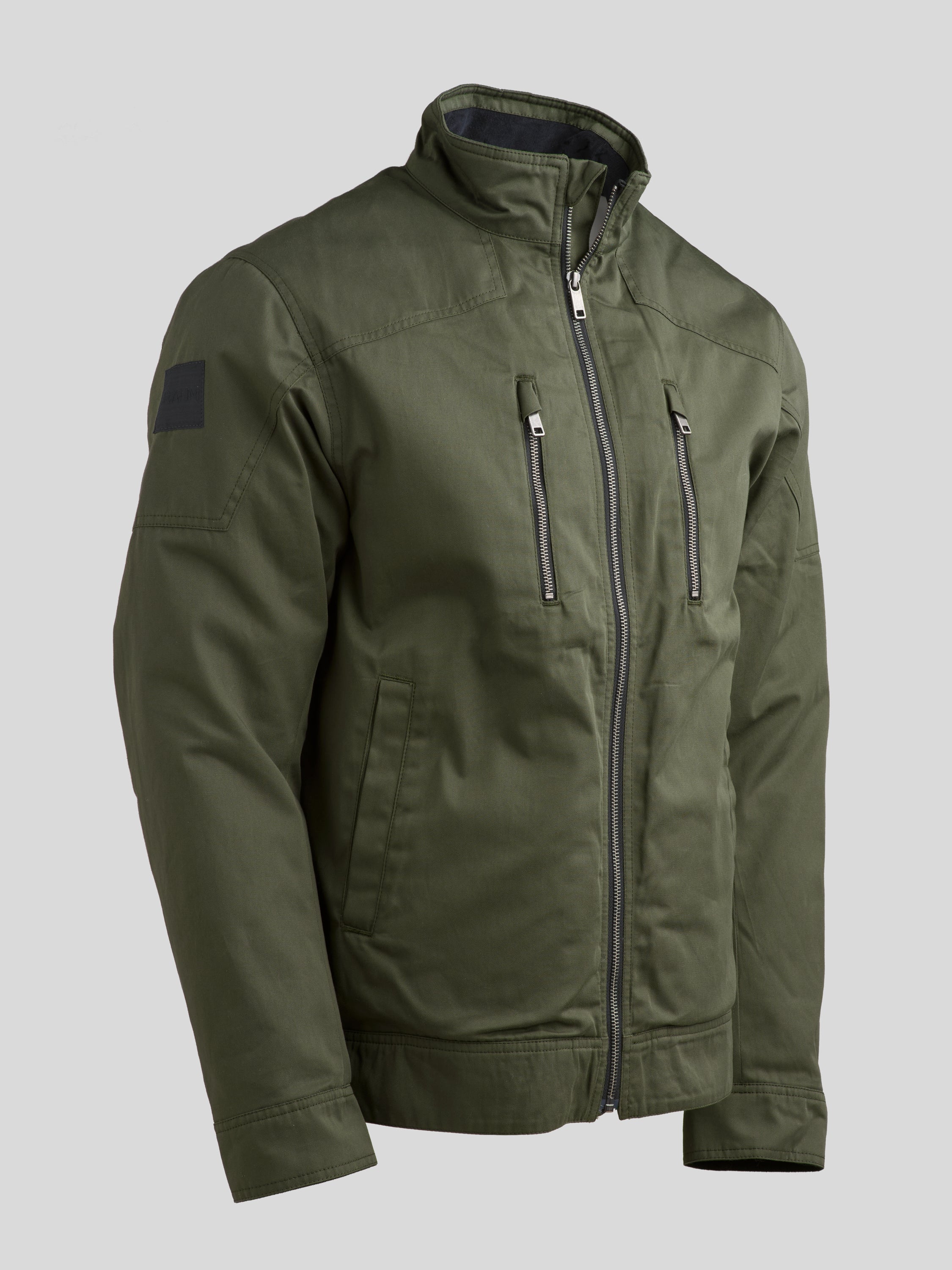 Those features include Scottish durable water-repellant cotton exterior, a high funnel neck, sleek motorsport silhouette with built up shoulders, and oversize hardened stainless steel zips.