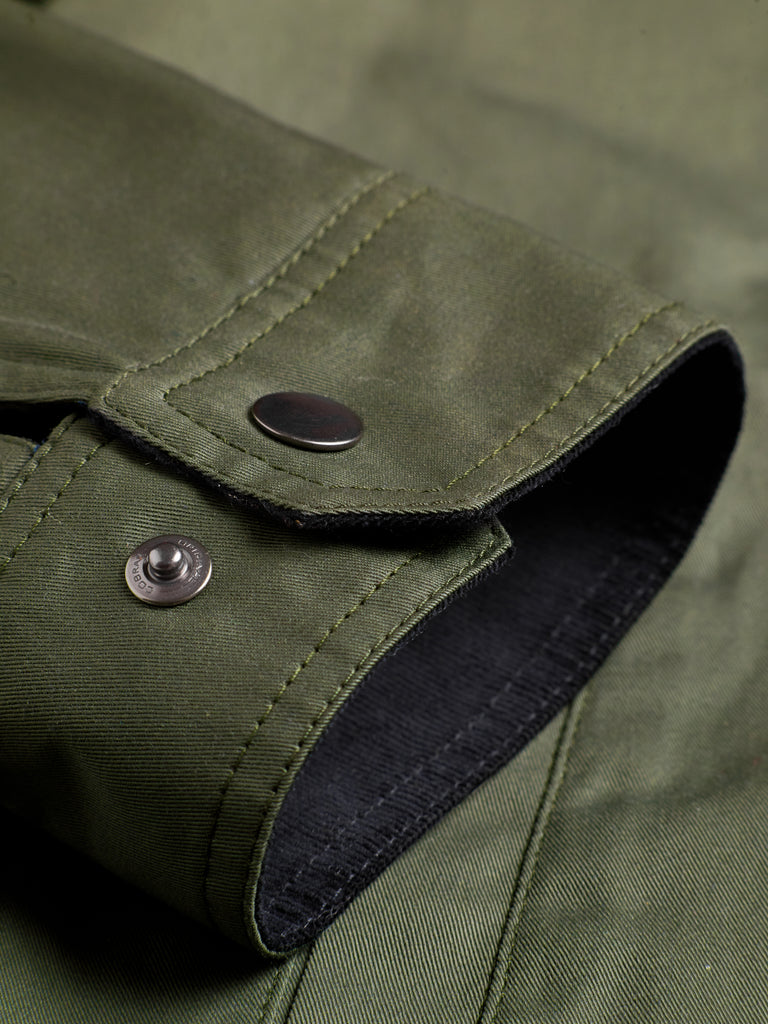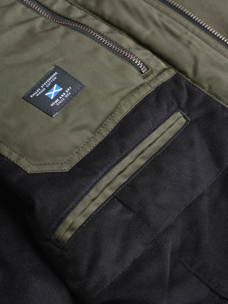 Out goes flimsy for tough, structured Scottish waxed cotton. The quilted corduroy lining is now luxurious. Every detail is more masculine and flattering, with armoured shoulders, hip adjusters and hard wearing finishing touches.