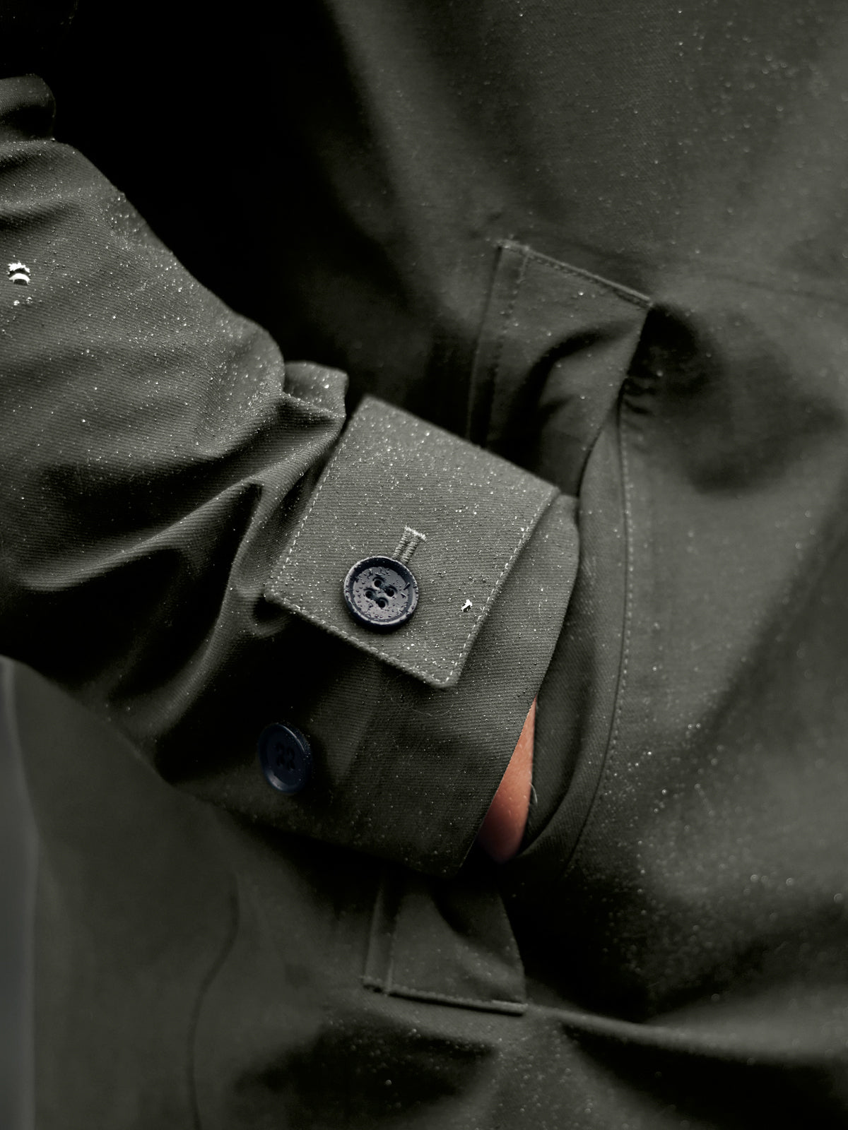 Most waterproof trench coat in the world. Rather than non-waterproof traditional gabardine cotton, we've chosen eVent technical fabric. Wear over a suit or smart business outfit.