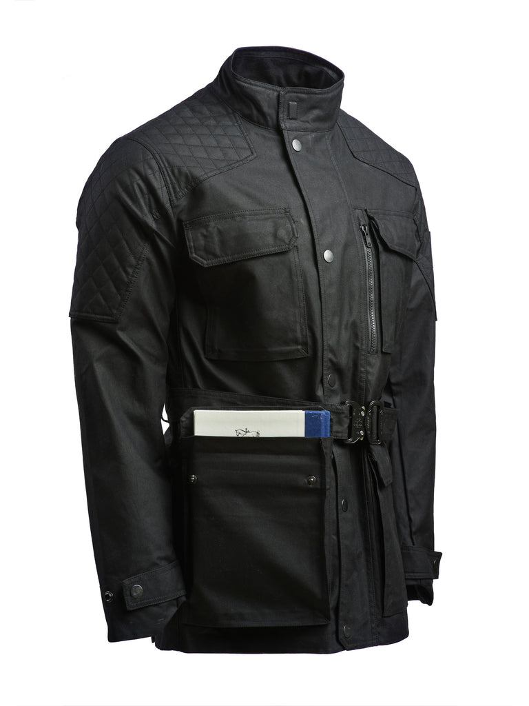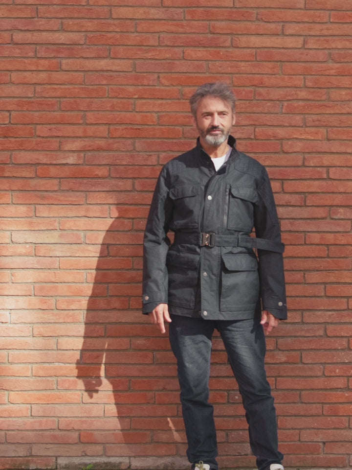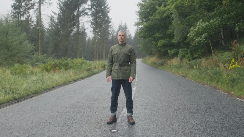 Inspired by WWII paratrooper's field jackets, this post-war waxed belted style was then to be a long, tough, multi-pocketed coat to protect motorbike trials riders from branches, falls and the weather.